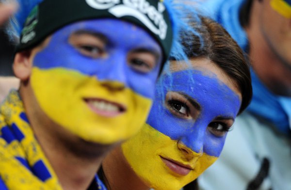 Більше креативу! Більше жовто-блакитного кольору! Екран телевізора чи монітора комп'ютера/ноутбука з трансляцією матчу збірної України на задньому плані вітаються!