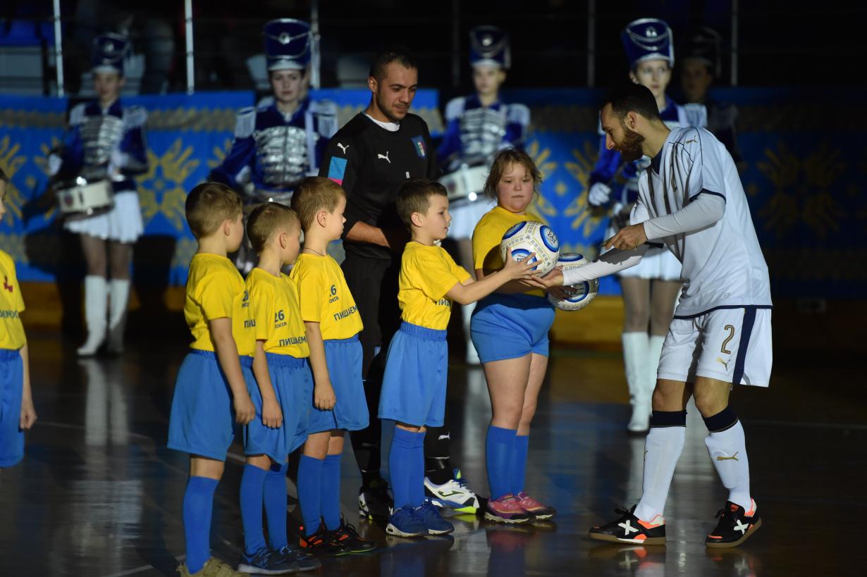 У рамках акції «Пишаємося! Вітаємо!» діти військовослужбовців ЗСУ взяли участь у церемонії відкриття матчу. У тематичних футболках, присвячених святу вивели на паркет ПС «Локомотив» гравців збірних України та Італії у рамках двох міжнародних товариських матчів, які відбулися 5-6 грудня у Харкові. Від кожного з футзалістів діти отримали в якості подарунку м’ячі від Федерації футболу України.