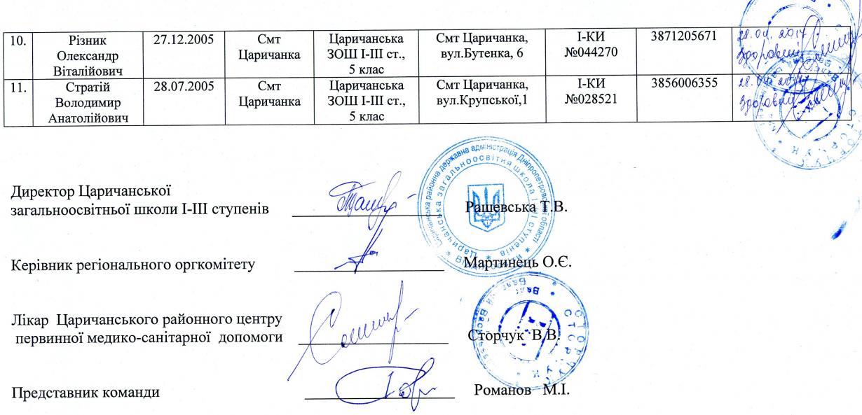 Заявка команди на Всеукраїнський фінал Шкільної футзальної ліги України