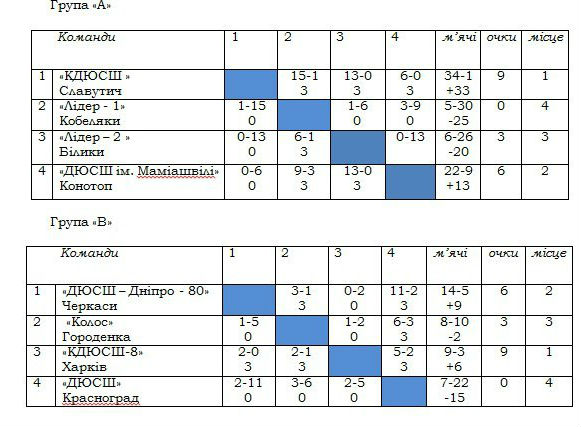 Пропонуємо Вашій увазі результати матчів у групах.