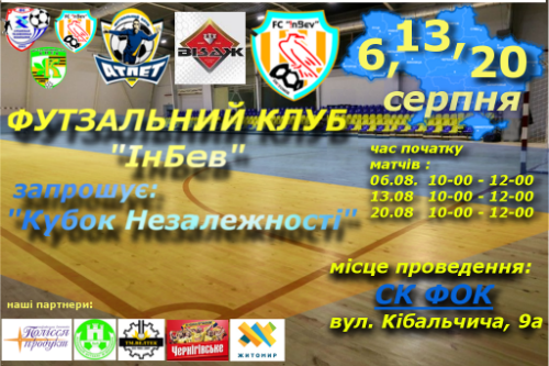 Напередодні Дня Незалежності житомирський футзальний клуб “ІнБев” за підтримки Асоціації футзалу м. Житомира ініціює проведення турніру “Кубок Незалежності”.